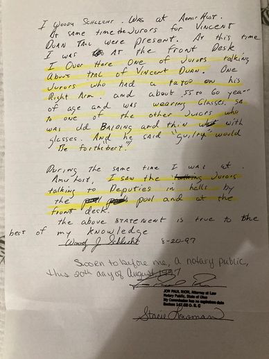 Juror in question was juror Tammy Brown. A news reporter from WLW Pete Gemmer was given information that a juror had talked about Vincent Doan's case and was already forming an opinion and that the juror's brother used to run around with Doan's brother.