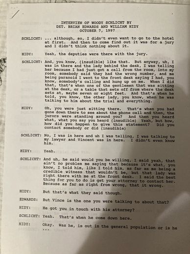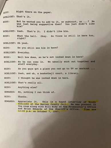 This was a taped interview of Woody Schultz speaking to Detective Brian Edwards and Detective Bill Hidy.
