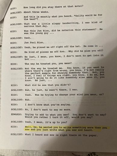 Woody Schultz was at the hotel with the jurors and overheard two of the male jurors a guilty verdict would be best.